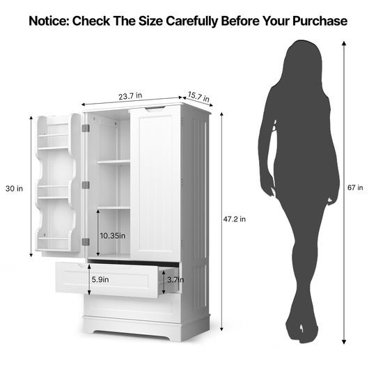 47″ H Pantry Cabinet with 2 Doors and 2 Drawer