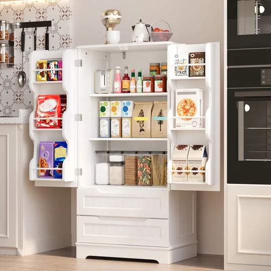 + Free Shipping🗄️【STORAGE SPACE】- The pantry cabinet combines 2 doors, 2 drawer, and 6 shelves, providing ample storage space for your tableware, clothes, and books