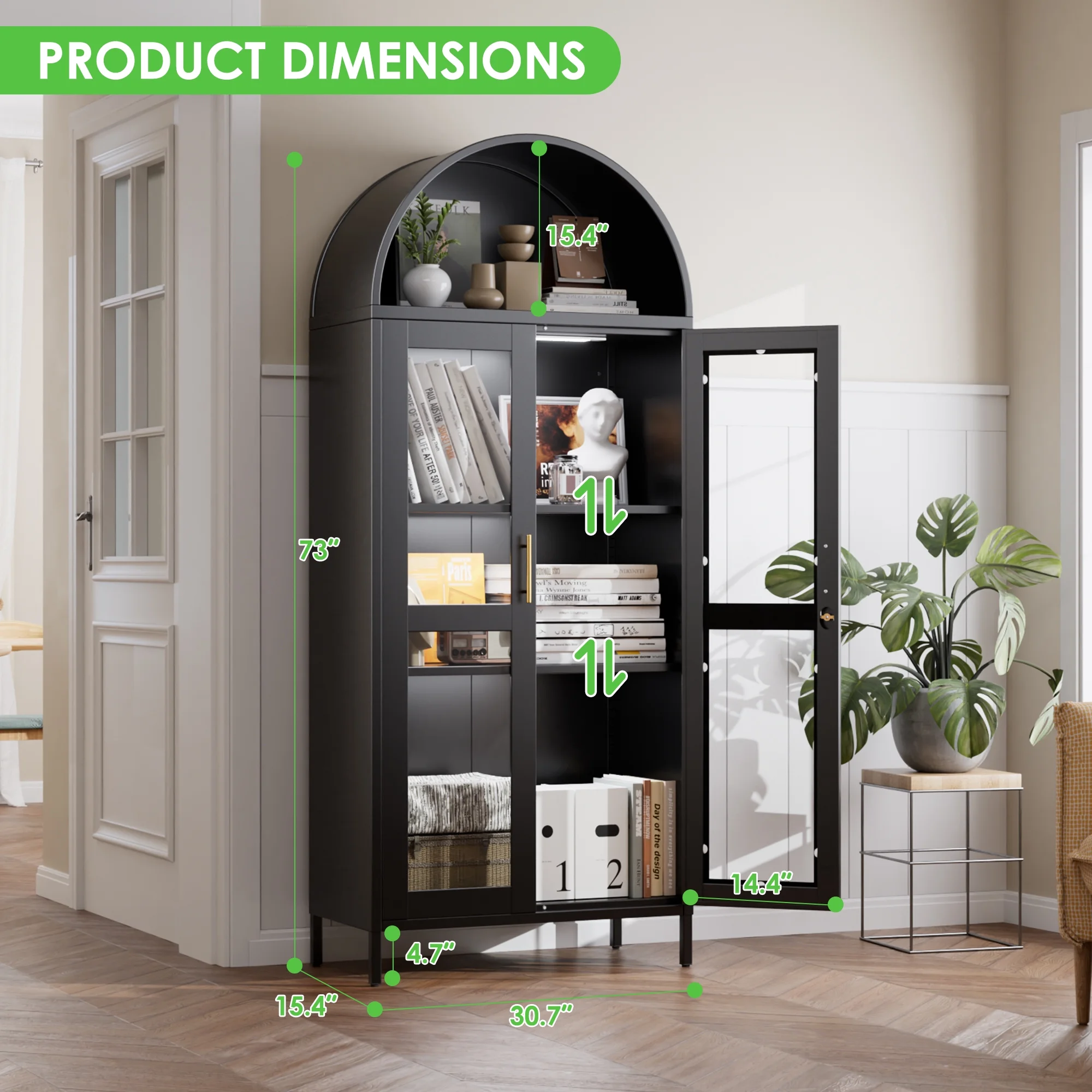Crafted from high-quality metal and glass, this cabinet features an exquisite arch design and aesthetic golden-painted contrasting handles, adding sophistication to any space.